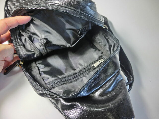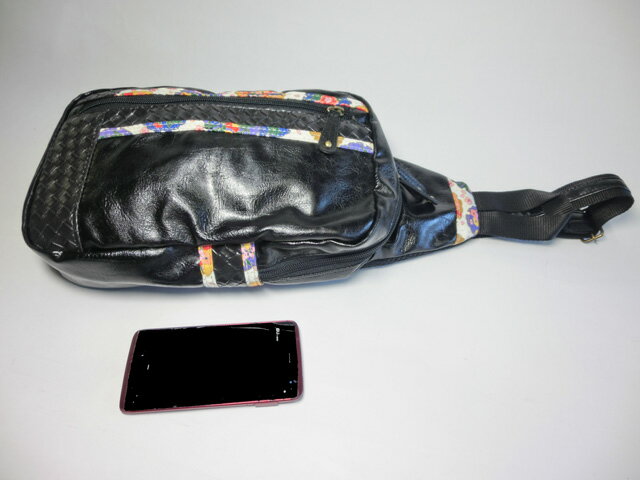 ワンポイントで和風生地のラインを施した和柄ボディバックです。