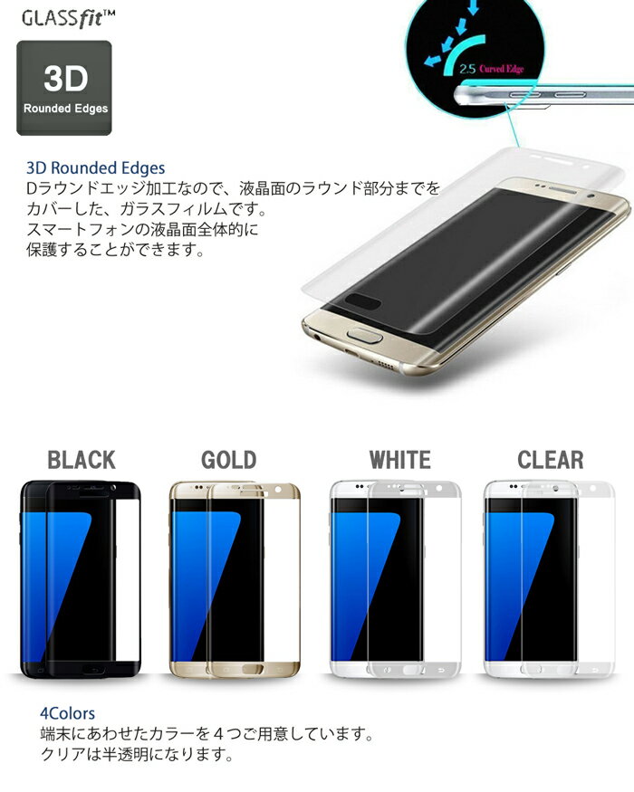 Galaxy S7 edge ガラスフィルム 3D 保護フィルム 液晶局面 ギャラクシーs7 エッジ カバー 9H 液晶保護 強化ガラスフィルム samsung docomo
