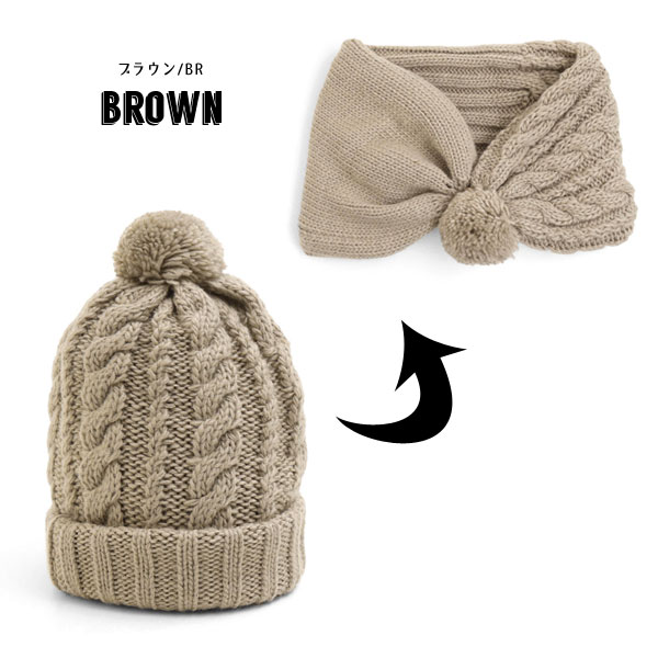 ・ ニット帽でご使用の場合は 半分を内側に入れて ケーブル柄ニット帽にします。