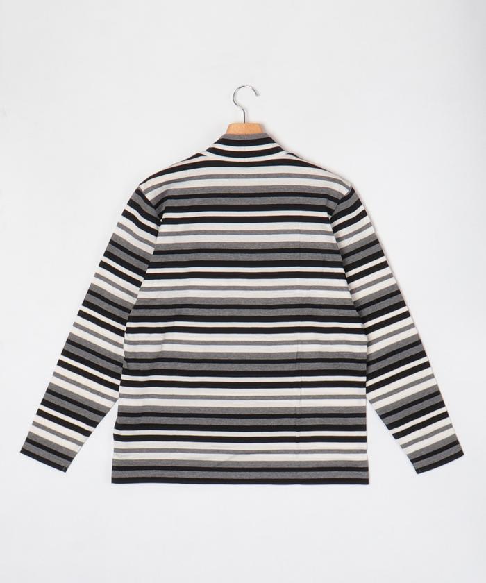 裏起毛で温かみのある素材を使用したボーダーハイネックシャツ。