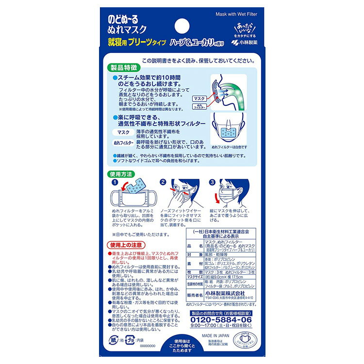 愛媛小林製薬「のどぬ〜るぬれマスク 就寝用プリーツタイプ(ハーブ&ユーカリの香り)3セット」を7箱まとめて! 就寝中にのどの乾燥を防ぎたい方に