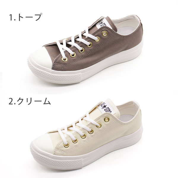 コンバース スニーカー レディース 靴 クリーム 軽量 軽い 疲れにくい 厚底 美脚効果 スタイルアップ 定番 オシャレ CONVERSE ALL STAR LIGHT PLTS GE OX オールスター ライト