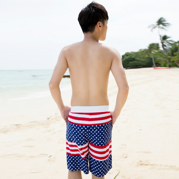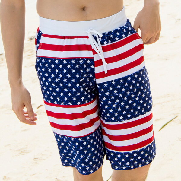 □[送料無料]メンズ トランクス パターン柄ハーフパンツ 水着 ハーパン ボトムス 派手柄スイムウエア ハーフ丈 ホットパンツ 短パン 海水浴 海パン 紐縛りタイプ 激モテ 海水パンツ サーフパンツ サーフショーツ パターン柄 キャプテンアメリカ 星条旗(サイズ:XL)