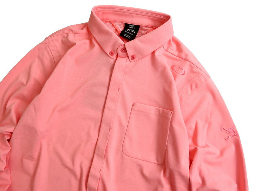 OAKLEY オークリー ゴルフ PERFORMANCE FIT SKULL COMMON LS SHIRTS WIND BARRIER hydrolix スリムフィット スカルコモン 長袖 シャツ FOA401641 定1.2万 コーラルピンク L▲029▼20202k06