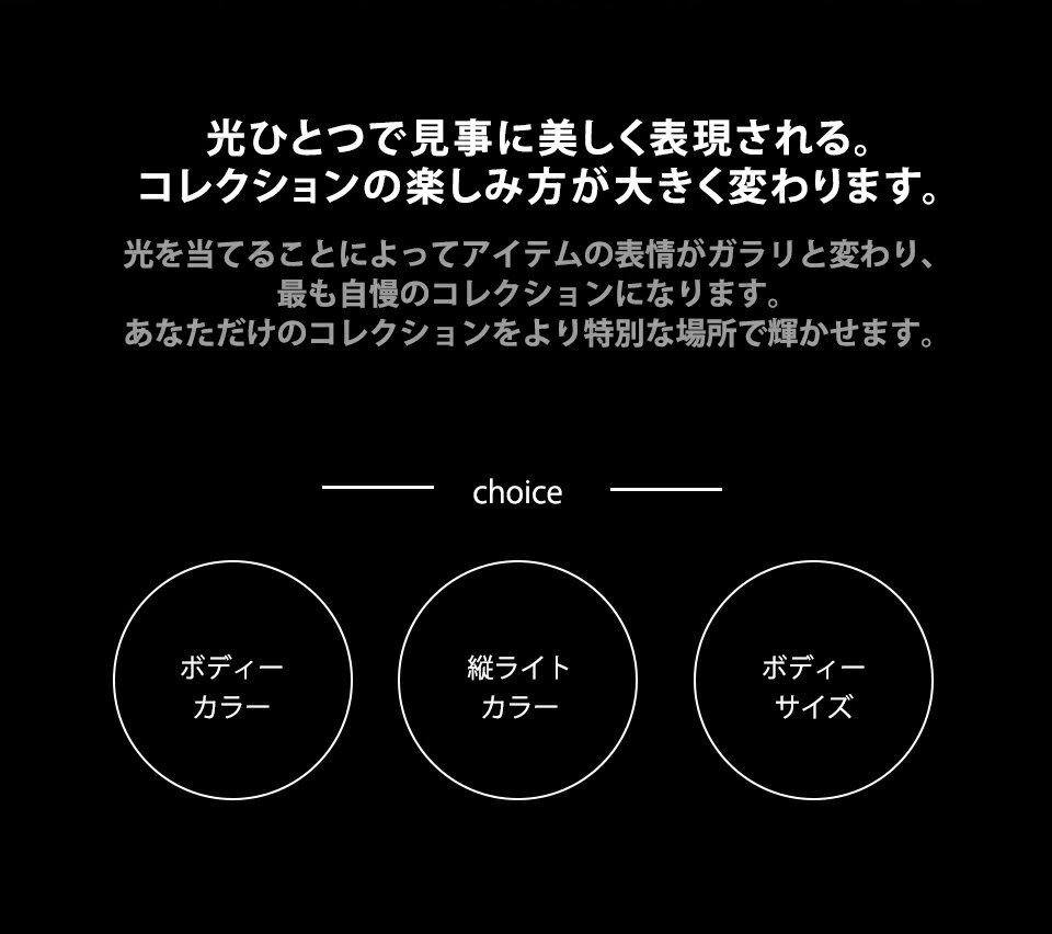 こんな商品を飾りたい方にオススメ: ガンプラ / プラモデル / フィギュア / アクスタ / ミニカー / トミカ / 戦艦 / ブリキ / おもちゃ / 洋酒 / ワイン / ウィスキー / ワイングラス / グラス / 骨董品 / 皿 / 食器 / フレグランス / 化粧品 / 香水 / サングラス / バッグ / 時計 / カメラ / CD / DVD / レコード / 模型 / ドール / ヒロアカ / 鬼滅 / ミク / アベンジャーズ / ウマ娘 / ポケモン / 呪術廻戦 / トレカ / 遊戯王 / アズールレーン / ワンピース / エヴァンゲリオン / エヴァ / ウマ娘縦ライトタイプ 50LED ハイタイプ 【スペクトル 縦ライト】 W50cm×D25cm×H143cm 50LED ミドルタイプ 【スペクトル 縦ライト】 W50cm×D25cm×H114cm 75LED ロータイプ 【スペクトル 縦ライト】 W75cm×D25cm×H85cm 横ライトタイプ 50LED ハイタイプ 【スペクトル 横ライト】 W50cm×D25cm×H143cm 50LEDミドルタイプ 【スペクトル 横ライト】 W50cm×D25cm×H114cm 75LED ロータイプ 【スペクトル 横ライト】 W75cm×D25cm×H85cm ベーシック ライト無しタイプ 50 ハイタイプ 【ベーシック】 W50cm×D25cm×H143cm 50 ミドルタイプ 【ベーシック】 W50cm×D25cm×H114cm 75 ロータイプ 【ベーシック】 W75cm×D25cm×H85cm ベーシック LEDダウンライト付きタイプ 50 ハイタイプ 【ベーシックLED】 W50cm×D25cm×H143cm 50 ミドルタイプ 【ベーシックLED】 W50cm×D25cm×H114cm 75 ロータイプ 【ベーシックLED】 W75cm×D25cm×H85cm