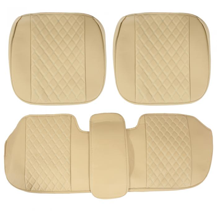 ソウテン X AUTOHAUX カーシートカバーセット フロントリア ユニバーサル 通気性 レザーレットパッドクッション ベージュ