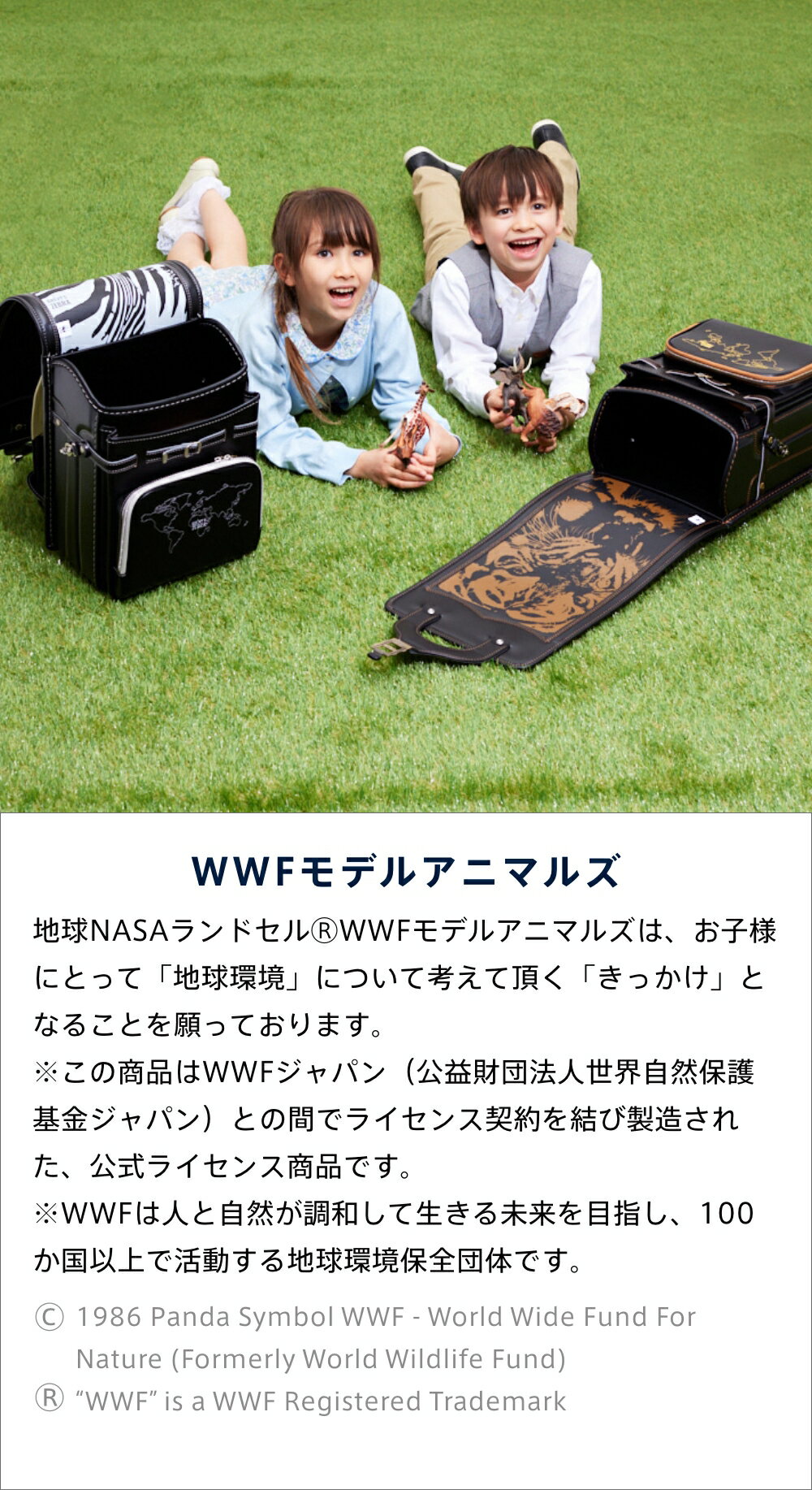 おすすめランドセルブランド商品詳細 商品名地球NASAランドセル® WWFモデル アニマルズ 品番WWF-N04 素材本体素材:コードレ 背裏素材:人工皮革 重量約1240g サイズA4フラットファイル対応 / 学習院型大マチ幅:幅広12.5cm 背カンウイング背カン (斜め後ろに引っ張られるような感覚がないので、背負いやすく、軽く感じられます)。