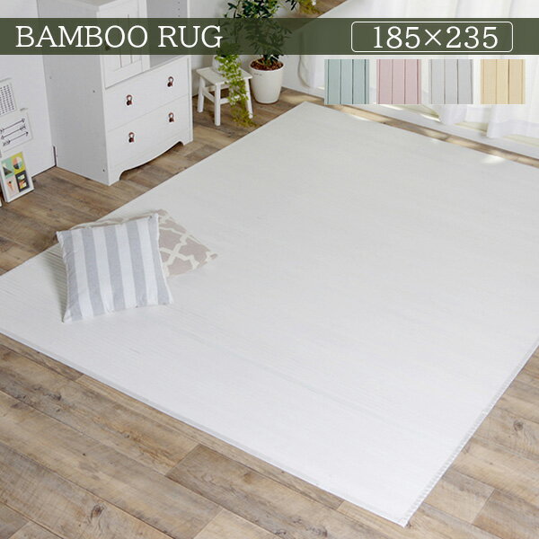 [8月25日はポイント5倍] カラフル ひんやり 竹製 ラグマット 185×235 / 竹ラグ 夏用 カーペット 3畳 おしゃれ 可愛い 長方形 夏ラグ ダイニングラグマット シャビーシック ピンク グリーン ナチュラル ホワイト 白 竹マット バンブーラグ
