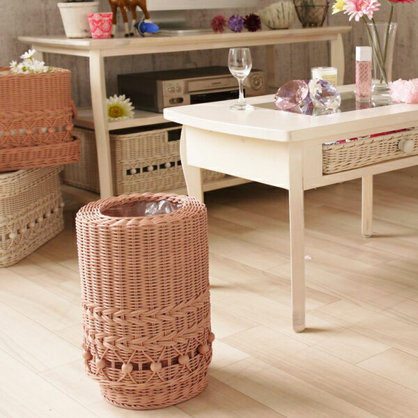 ダストボックス ラタン ごみ箱 屑箱 ゴミ箱 くず入れ インテリア 韓国インテリア 雑貨 かわいい おとな可愛い おしゃれ 家具 おしゃれなごみ箱 かわいいゴミ箱 隠せる 丸型 ピンク【OG】グランディック