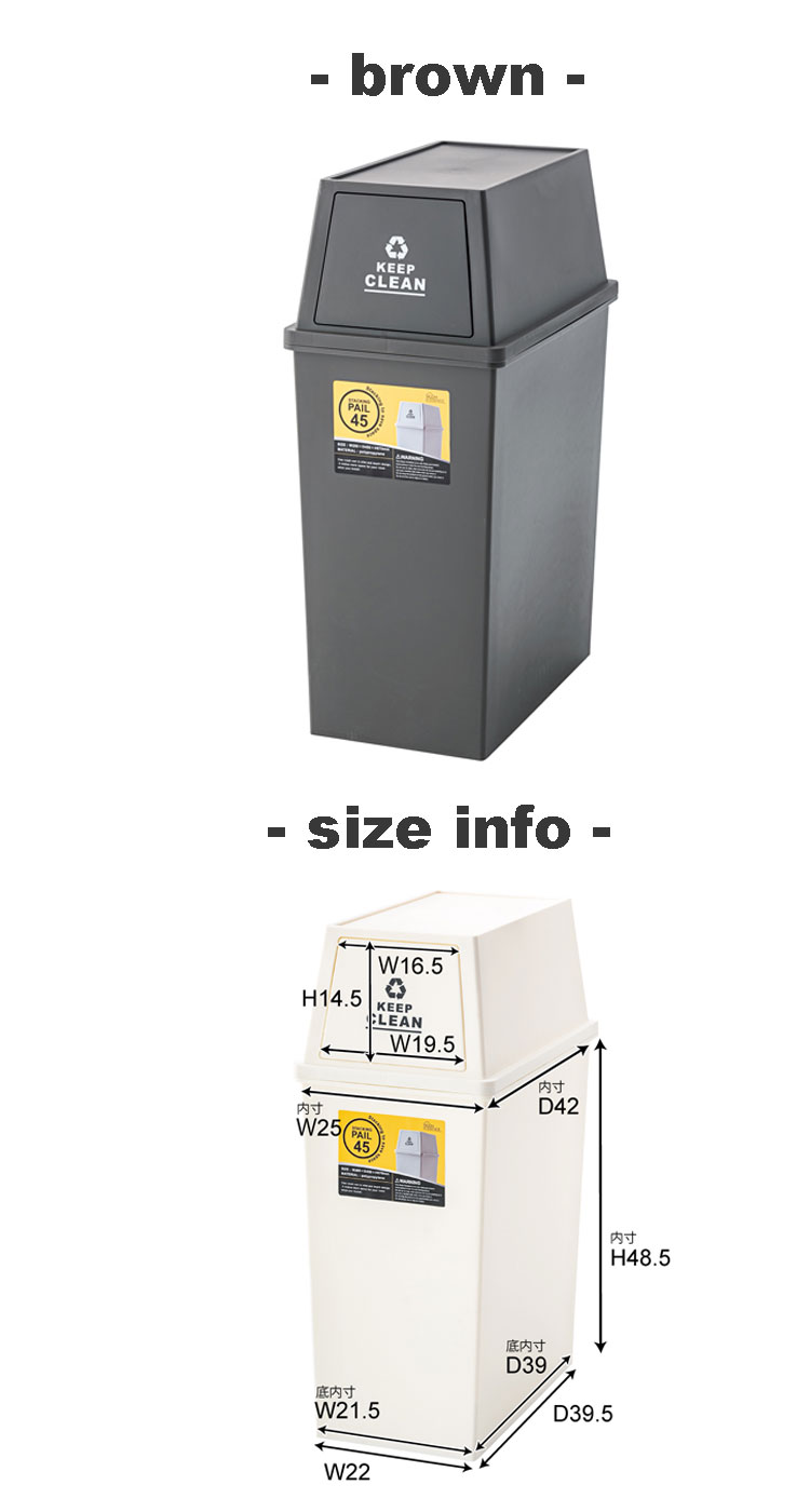 商品仕様 商品名 ゴミ箱 ダストボックス トラッシュボックス スタッキングペール 45L 45リットル 大容量 ベランダ 屋内 屋外 室内 インテリア DIY 園芸ツール 雑貨 白 ホワイト 緑 グリーン 茶色 ブラウン LFS-761WH/GR/BR OTTD カラー WHITE/GREEN/BROWN 素材 ポリプロピレン ※ご注意(ご購入の前に必ずご一読下さい。