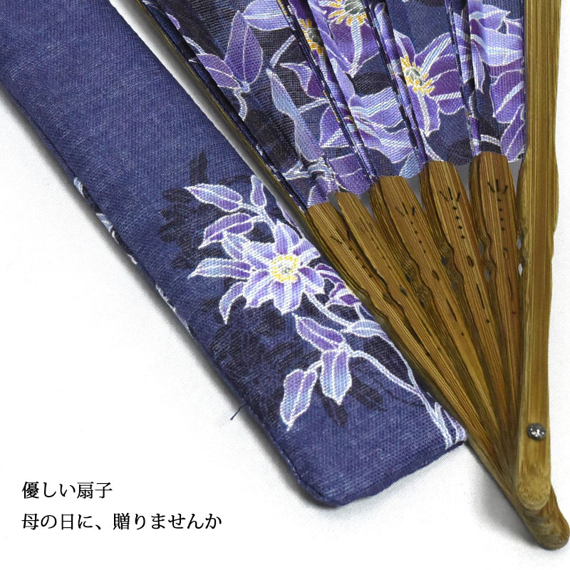 扇子 セット 女性用 花 鉄線 藍 ネイビー 紺 センス 布扇子 ビジネス プレゼント 差し袋付き 箱入り ギフト プレゼント 母の日/誕生日 バラ 花束 夏 浴衣/敬老の日 クリスマス/バレンタイン 夏 暑さ対策 海