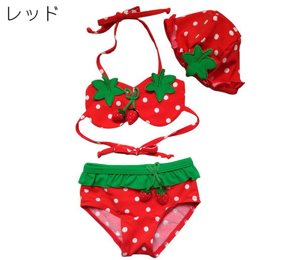 部分短納期 水着 女の子 子供用キッズ水着イチゴ 苺 子供ビキニ、ベビー キッズ 子供みずぎ スイムウェア 旅行 ビーチ遊び 韓国風 水着 女の子 3点セット子供用水着 女の子 ビキニ ミズギ 90/100/110/120/130cm
