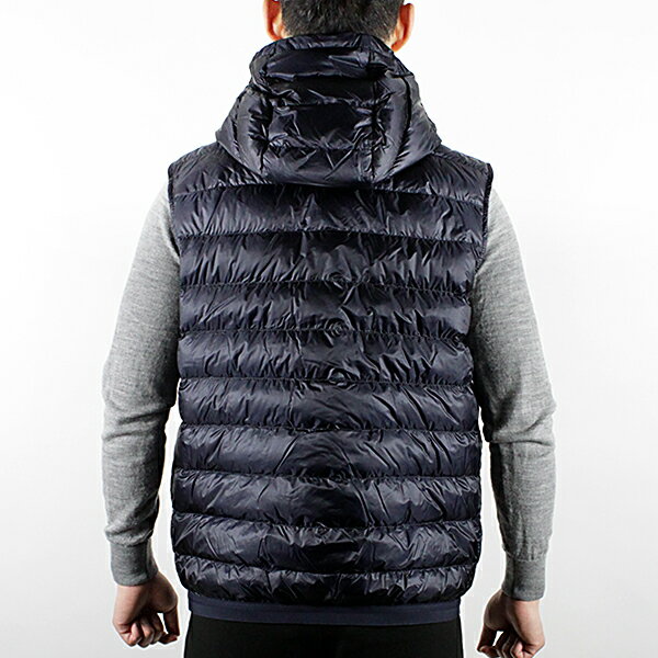 シンプルなデザインに大胆に配置されたブランドロゴが特徴的なダウンベスト。