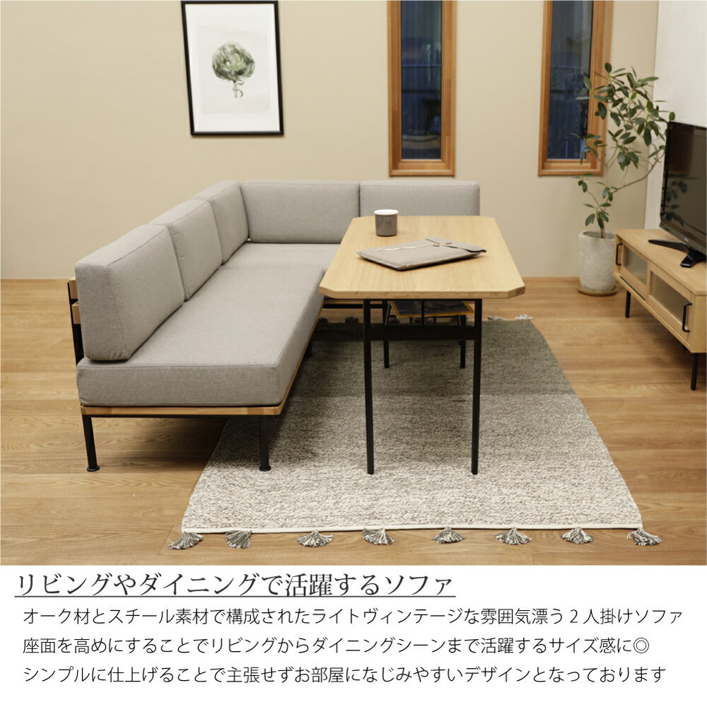 Glamシリーズページはこちら 特徴 オーク材とスチール素材で構成されたライトヴィンテージな雰囲気漂う2人掛けソファ 座面を高めにすることでリビングからダイニングシーンまで活躍するサイズ感に◎ シンプルに仕上げることで主張せずお部屋になじみやすいデザインとなっております 材質 張地:布(ポリエステル100%) 背横板:天然木(オーク) ポリウレタン塗装 座ベース:天然木(ラバーウッド) ポリウレタン塗装 フレーム:スチール(φ27mm) 粉体塗装 サイズ W1200×D650×H700(SH400) mm 重量 23 kg 備考 こちらの商品ページは2Pソファ単品販売となっております 宅配便でのお届け(玄関渡し) 組立品 カバーリング仕様(ドライクリーニング可能) 納期 お取り寄せ商品となっております。