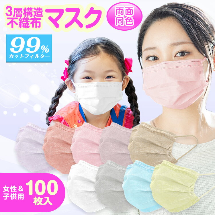 マスク 不織布 カラー 小さめ 小顔用 50枚入り×2箱 不織布マスク 100枚 血色マスク 両面同色 耳紐 平ゴム 使い捨てマスク 子供 息がしやすい プリーツマスク 女性用 子ども用 防塵 花粉 飛沫 感染対策 BFE VFE PFE 99%以上カット FDA CE 認証済み ny317-100